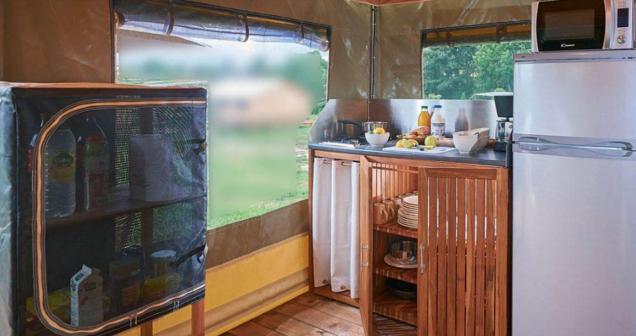 - 1 Kochecke mit 2-flammigem Gaskochfeld und Kühlschrank 130L